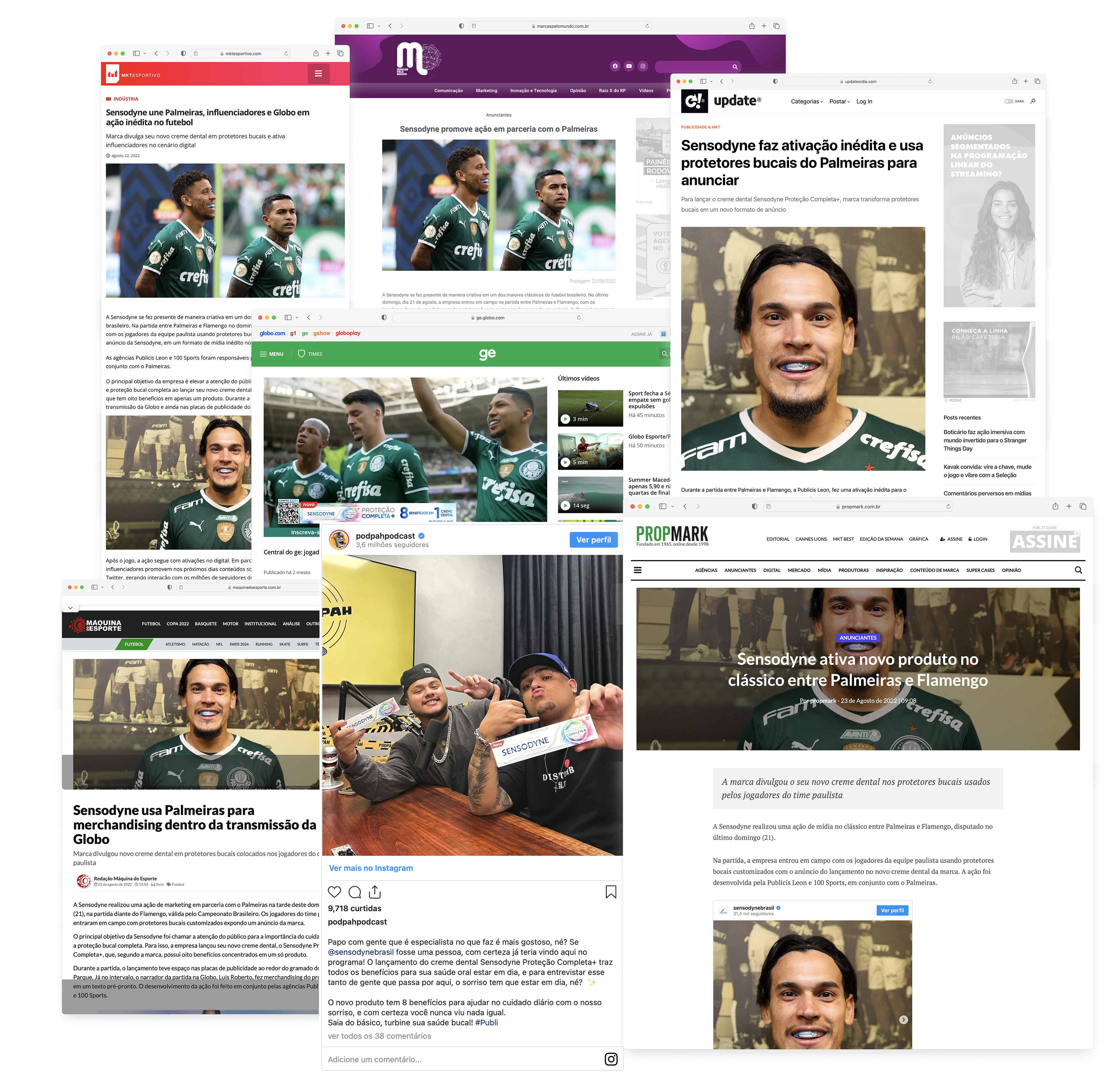 Para reforçar os 8 benefícios do novo creme dental Sensodyne Proteção Completa+ criamos um formato inédito de mídia: os protetores bucais dos jogadores de futebol. Levamos o lançamento para a boca do elenco do Palmeiras num jogo contra o Flamengo pelo campeonato Brasileiro.